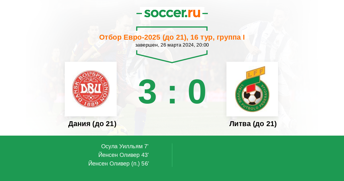 Дания (до 21) - Литва (до 21): обзор матча 26 марта 2024