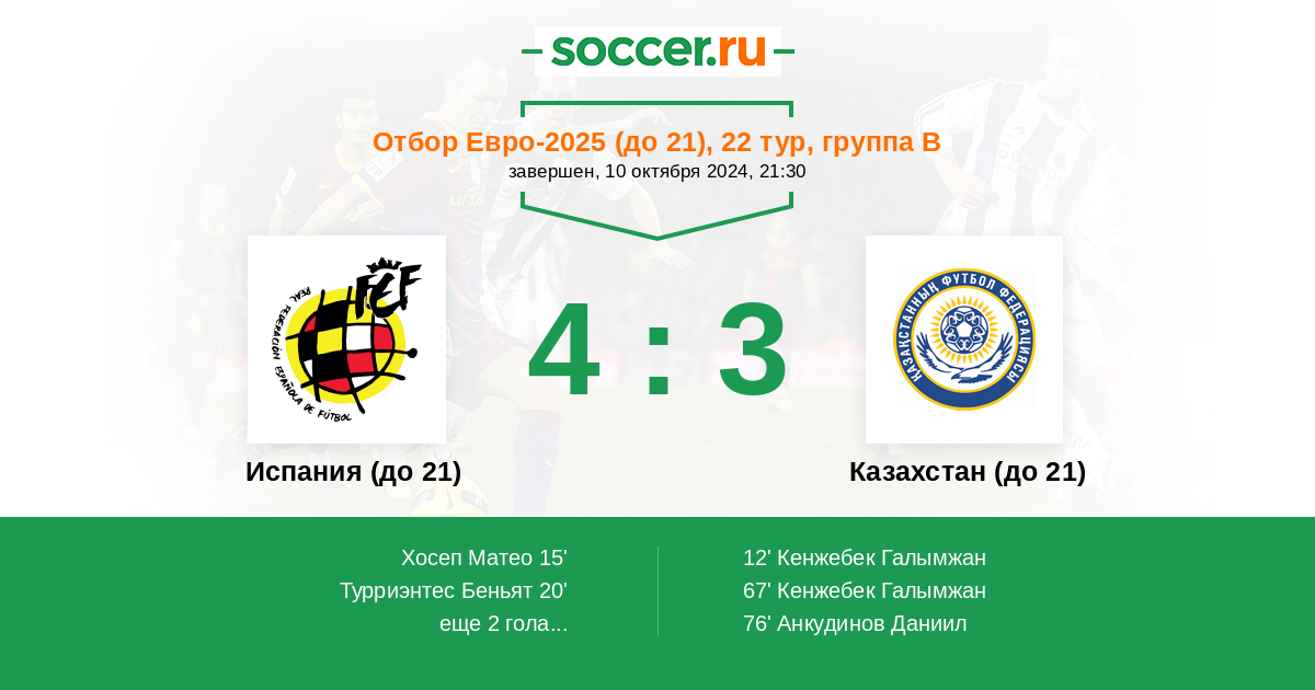 Испания (до 21) - Казахстан (до 21): обзор матча 10 октября 2024