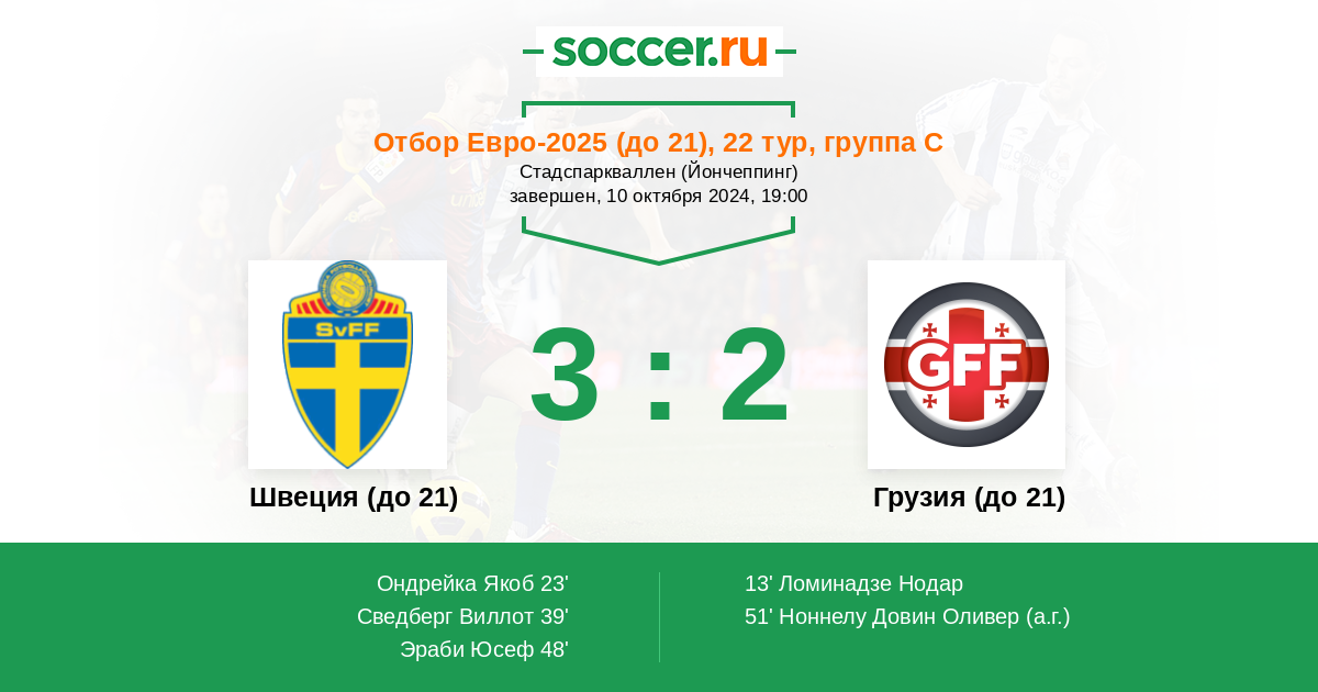 Швеция (до 21) - Грузия (до 21): обзор матча 10 октября 2024