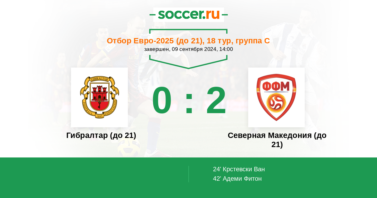Гибралтар (до 21) - Северная Македония (до 21): обзор матча 9 сентября 2024