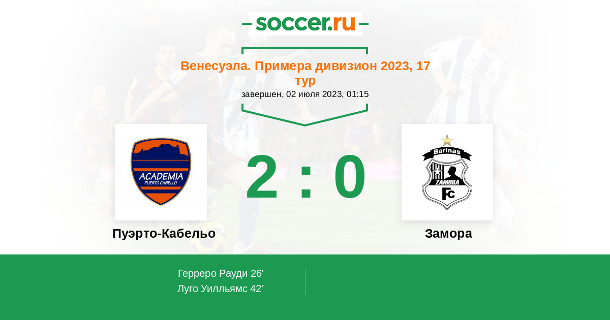 Пуэрто-Кабельо - Замора: обзор матча 2 июля 2023