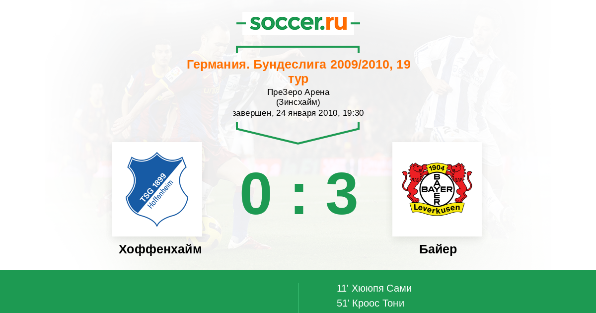 Хоффенхайм - Байер: обзор матча 24 января 2010