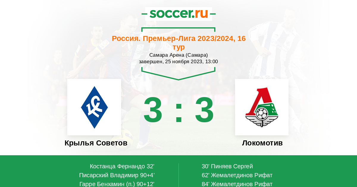 Крылья Советов - Локомотив: обзор матча 25 ноября 2023