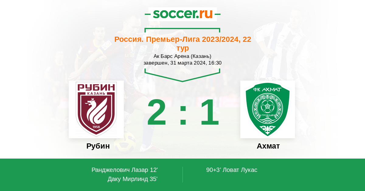 Рубин - Ахмат: обзор матча 31 марта 2024