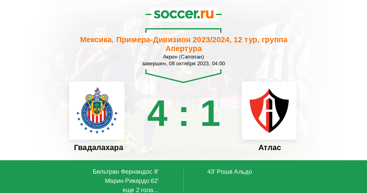 Гвадалахара - Атлас: обзор матча 8 октября 2023