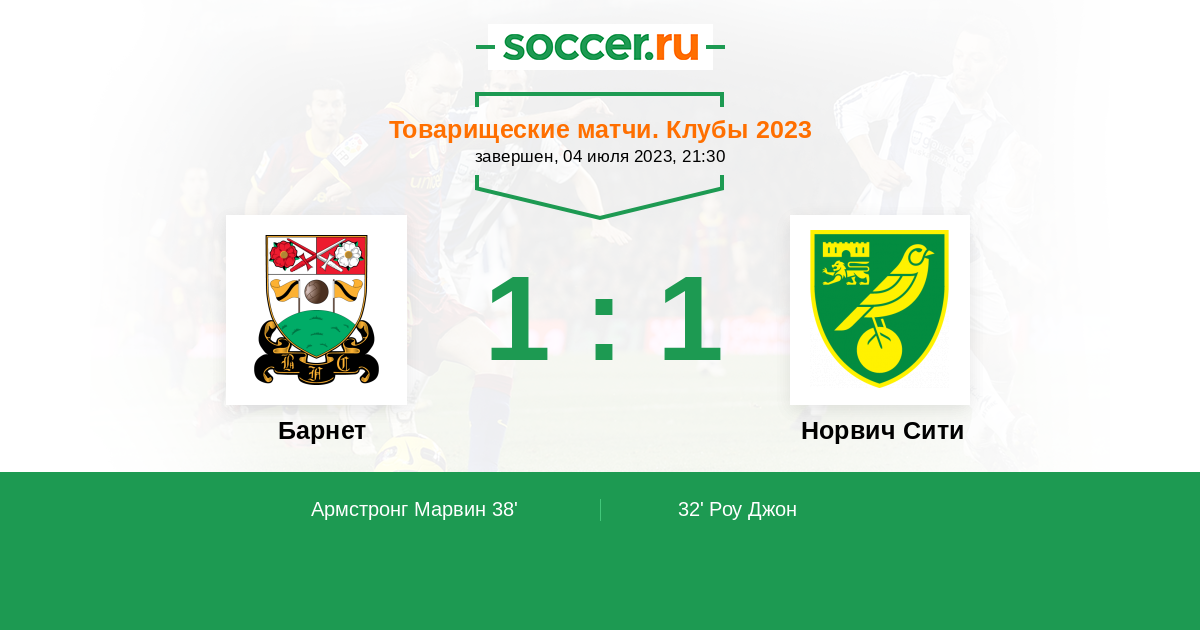 Барнет - Норвич Сити: обзор матча 4 июля 2023