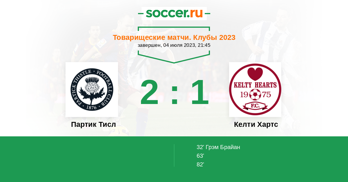 Партик Тисл - Келти Хартс: обзор матча 4 июля 2023