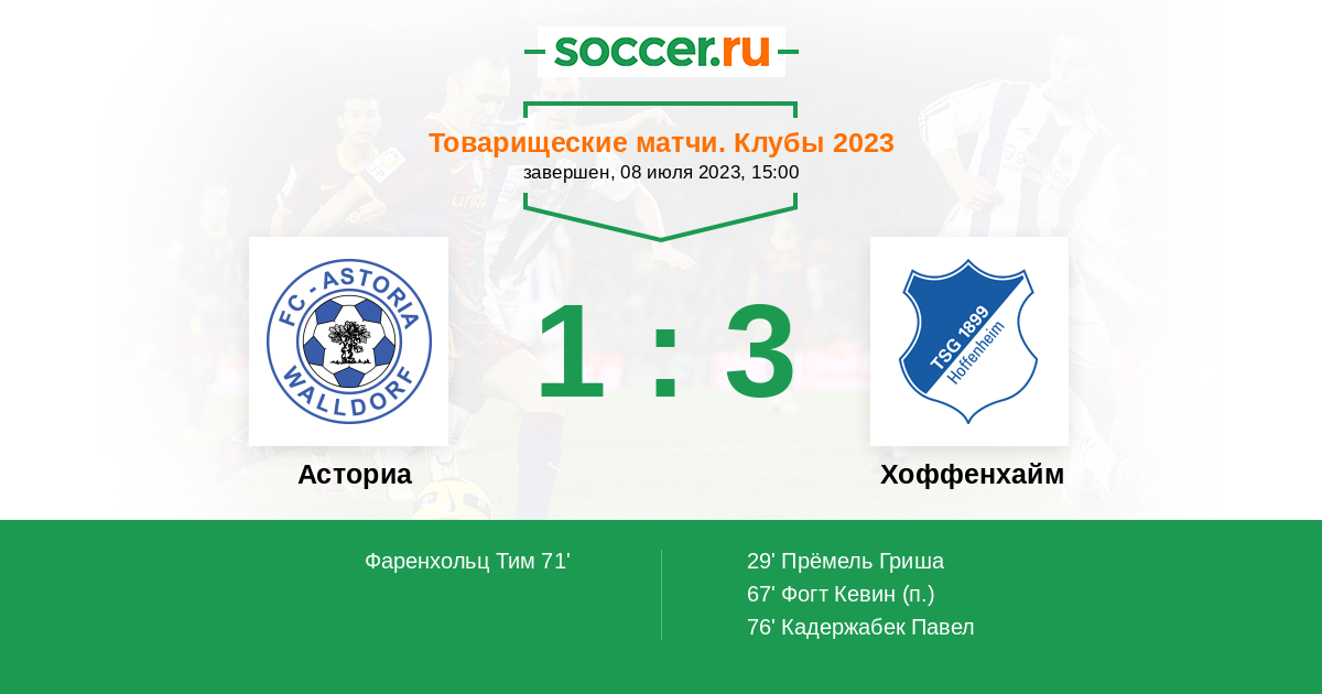 Асториа - Хоффенхайм: обзор матча 8 июля 2023