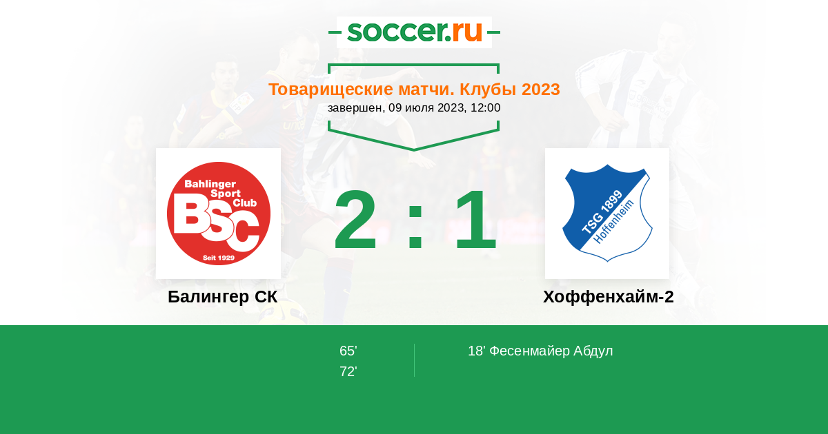 Балингер СК - Хоффенхайм-2: обзор матча 9 июля 2023