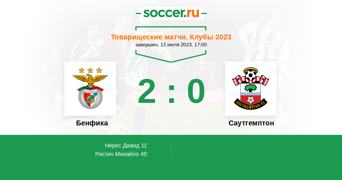 Бенфика - Саутгемптон: обзор матча 12 июля 2023