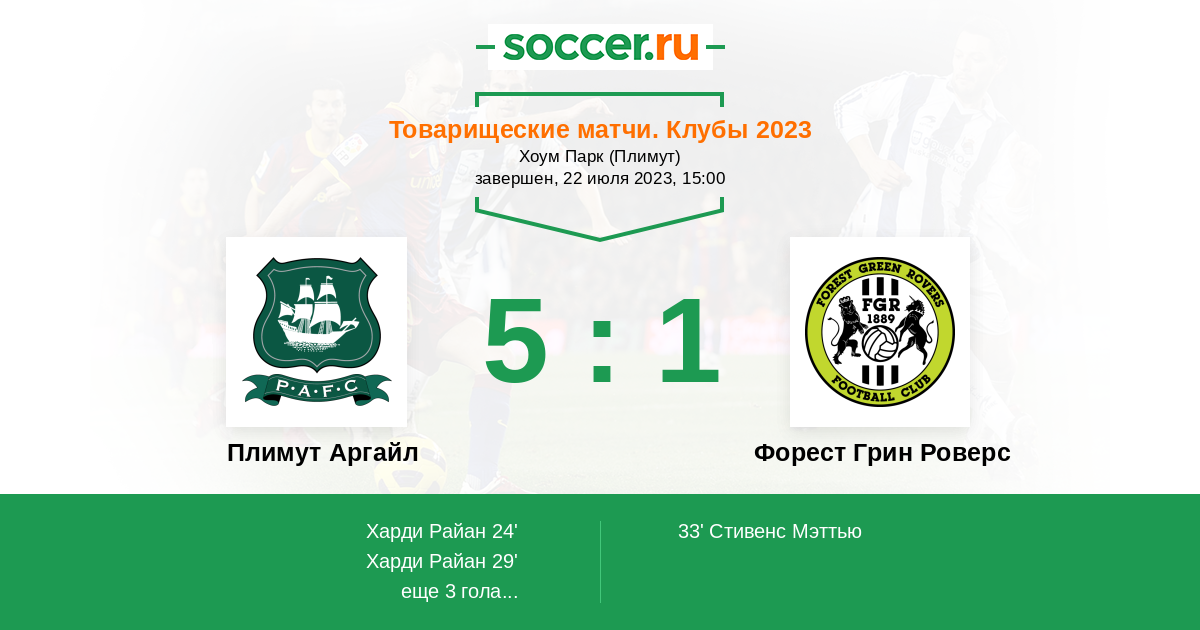 Плимут Аргайл - Форест Грин Роверс: обзор матча 22 июля 2023