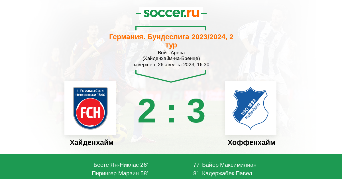 Хайденхайм - Хоффенхайм: обзор матча 26 августа 2023