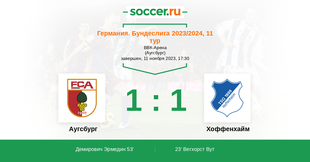 Аугсбург - Хоффенхайм: обзор матча 11 ноября 2023