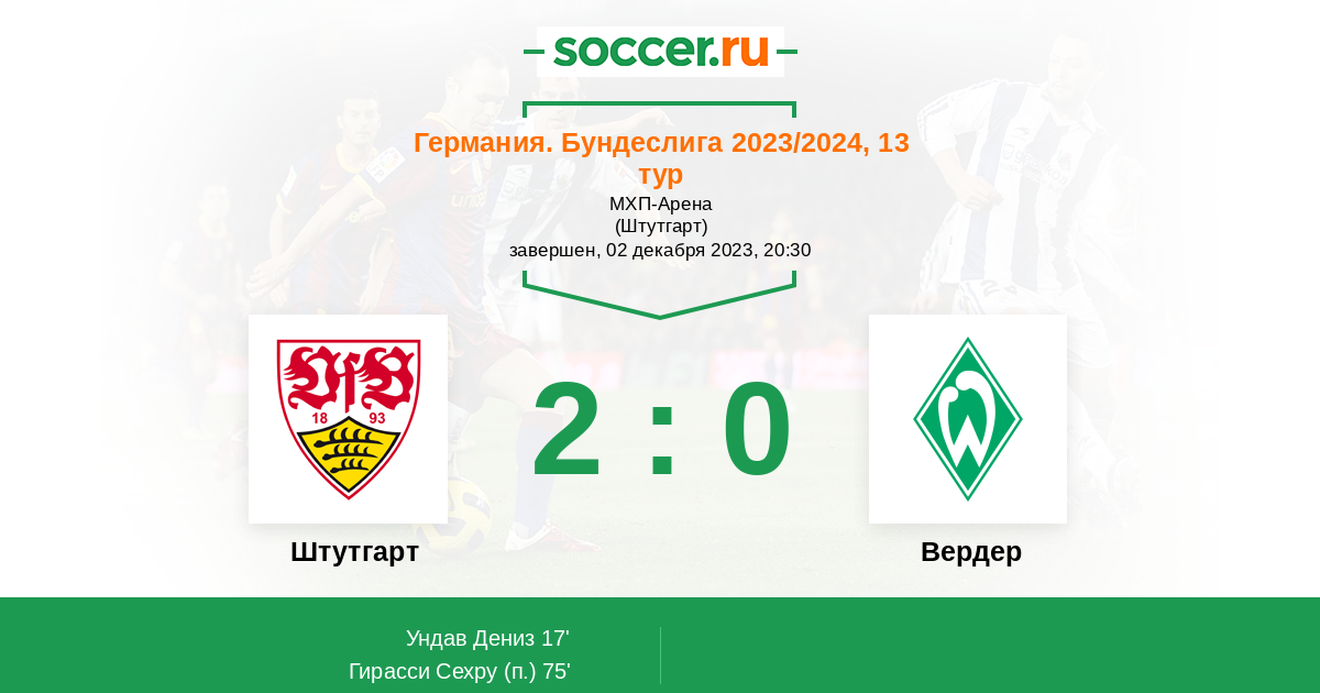 Штутгарт - Вердер: обзор матча 2 декабря 2023