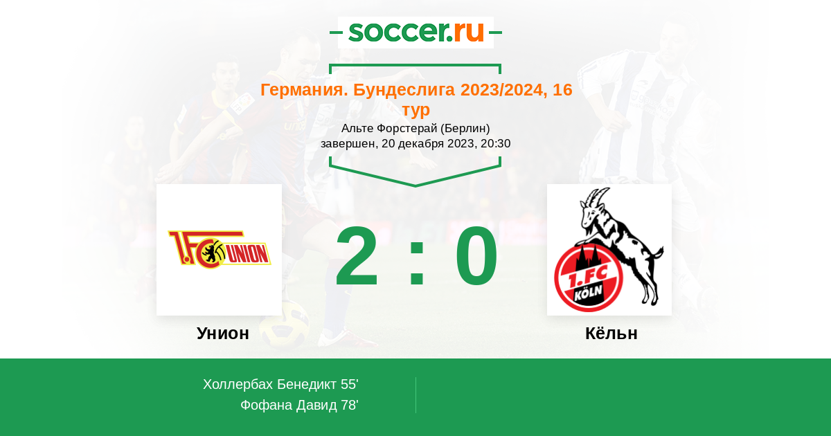 Унион - Кёльн: обзор матча 20 декабря 2023