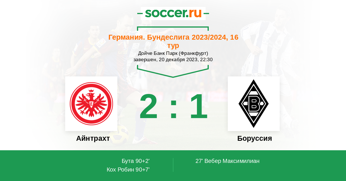 Айнтрахт - Боруссия: обзор матча 20 декабря 2023