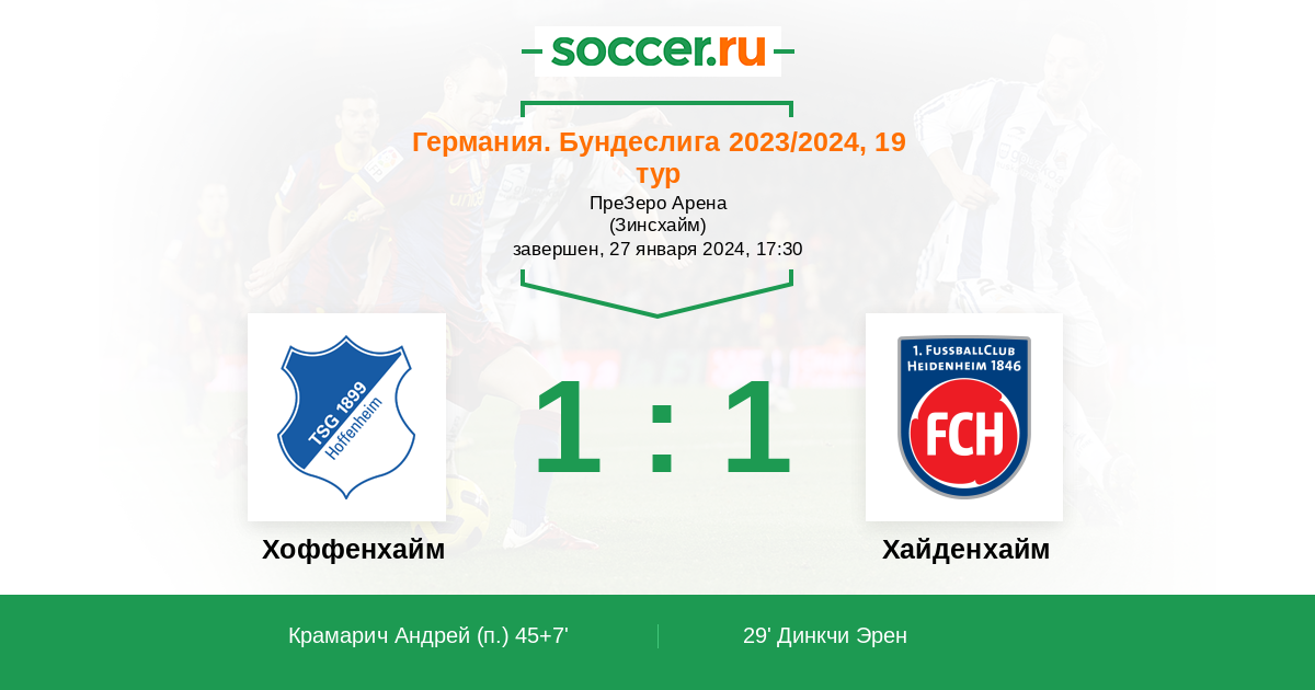 Хоффенхайм - Хайденхайм: обзор матча 27 января 2024