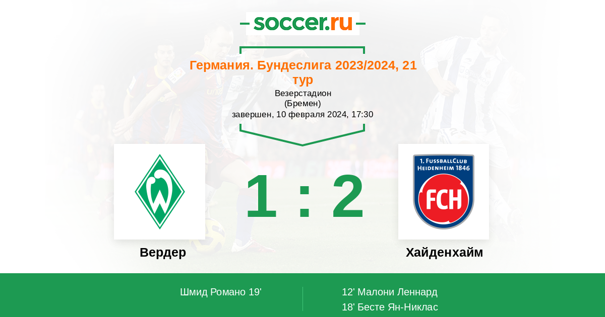 Вердер - Хайденхайм: обзор матча 10 февраля 2024