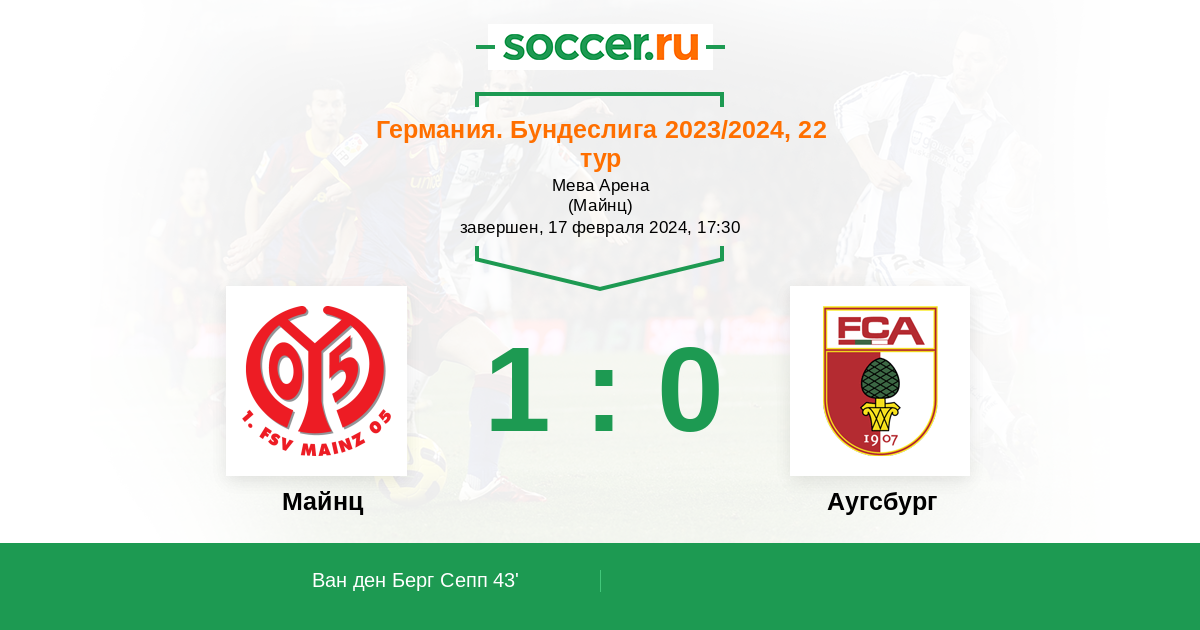 Майнц - Аугсбург: обзор матча 17 февраля 2024