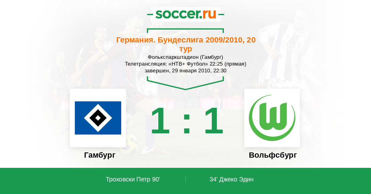 Гамбург - Вольфсбург: обзор матча 29 января 2010