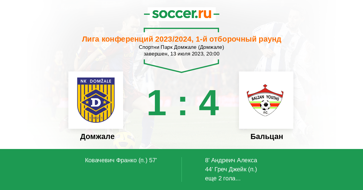 Домжале - Бальцан: обзор матча 13 июля 2023
