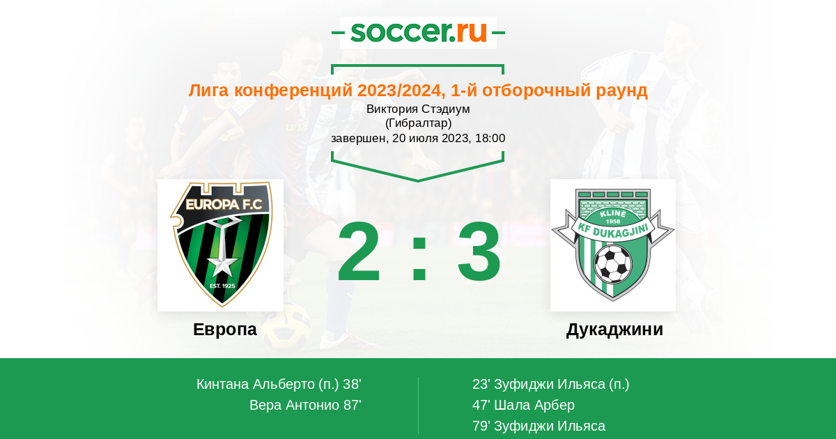 Европа - Дукаджини : обзор матча 20 июля 2023