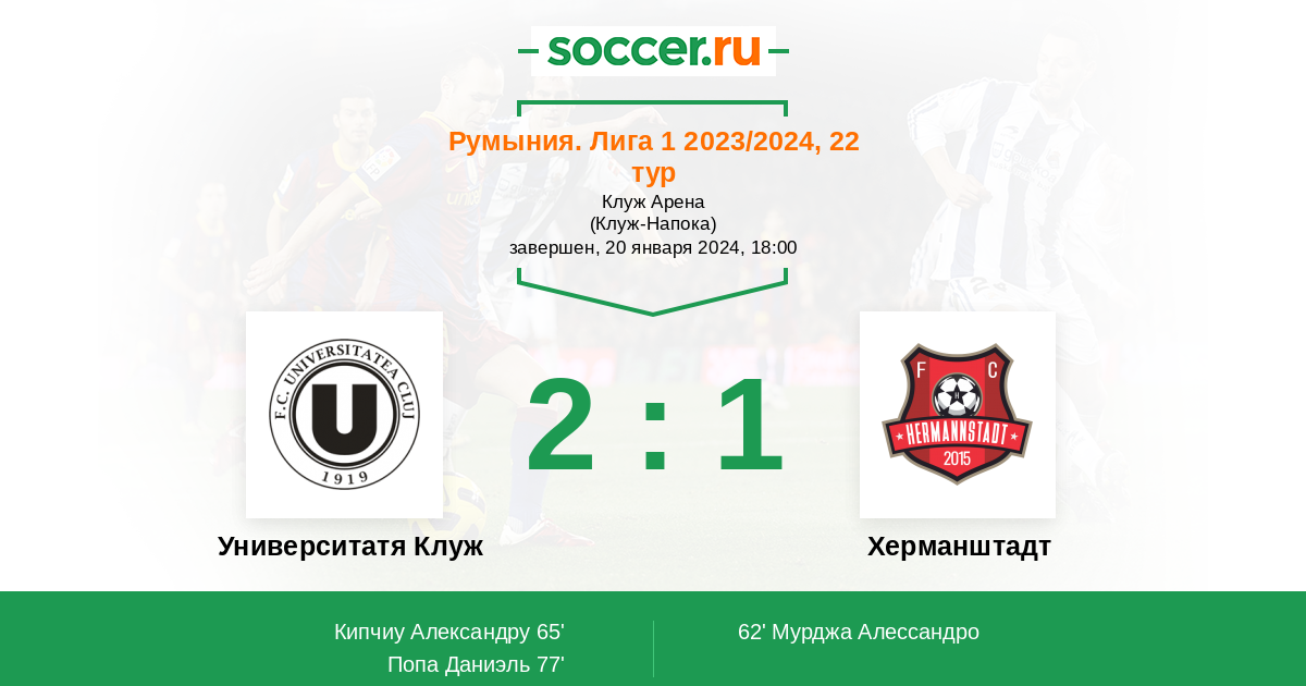 Университатя Клуж - Херманштадт: обзор матча 20 января 2024