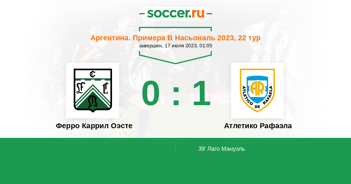 Ферро Каррил Оэсте - Атлетико Рафаэла: обзор матча 17 июля 2023