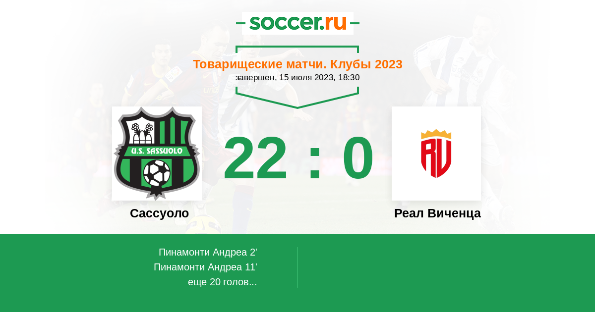 Сассуоло - Реал Виченца: обзор матча 15 июля 2023