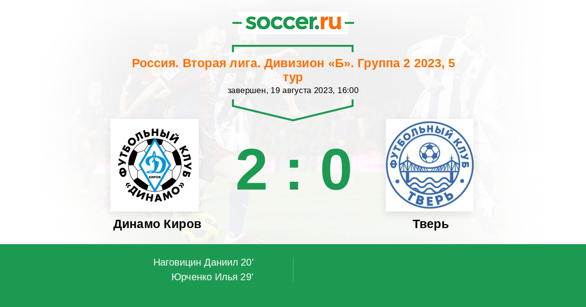 Динамо Киров - Тверь: обзор матча 19 августа 2023