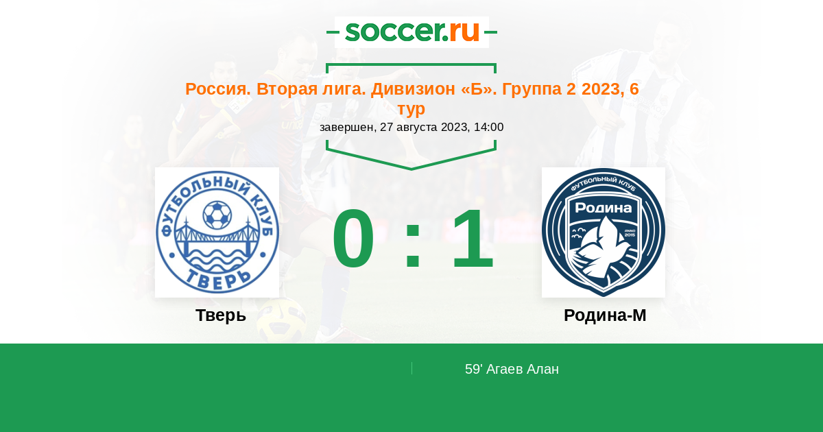 Тверь - Родина-М: обзор матча 27 августа 2023