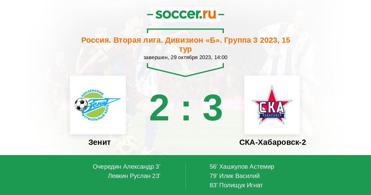 Зенит - СКА-Хабаровск-2: обзор матча 29 октября 2023