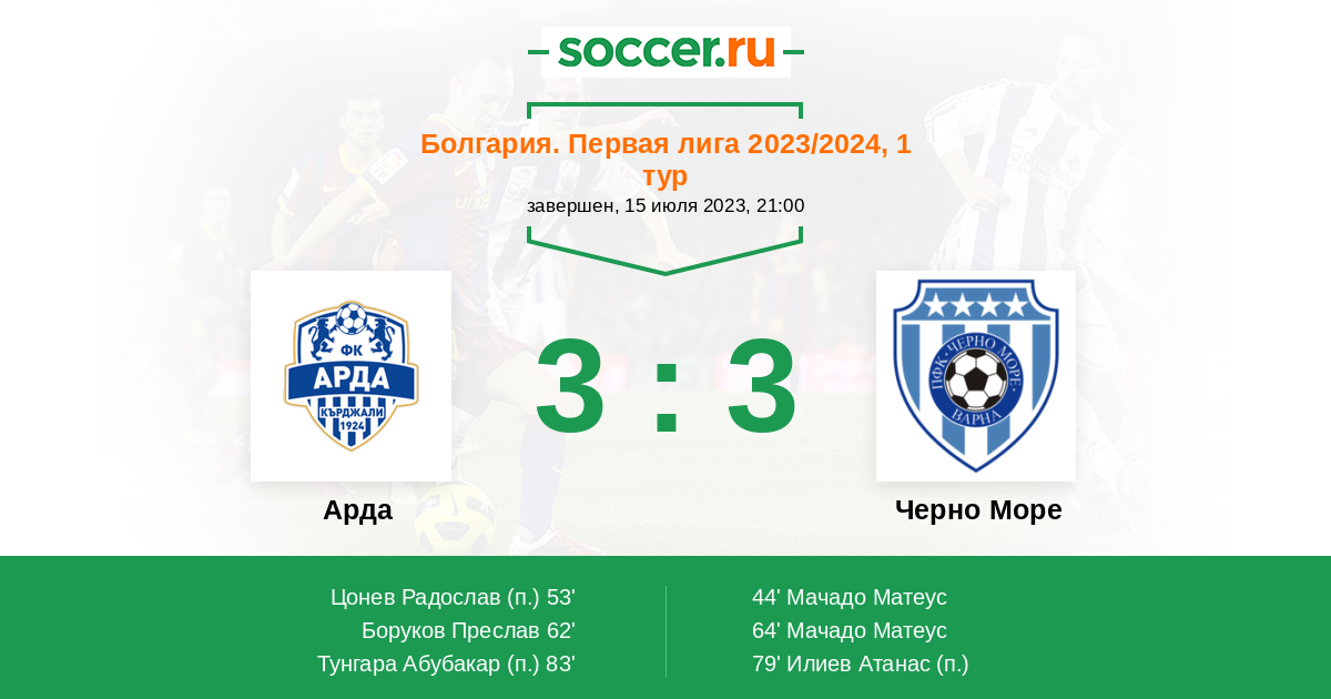 Арда - Черно Море: обзор матча 15 июля 2023