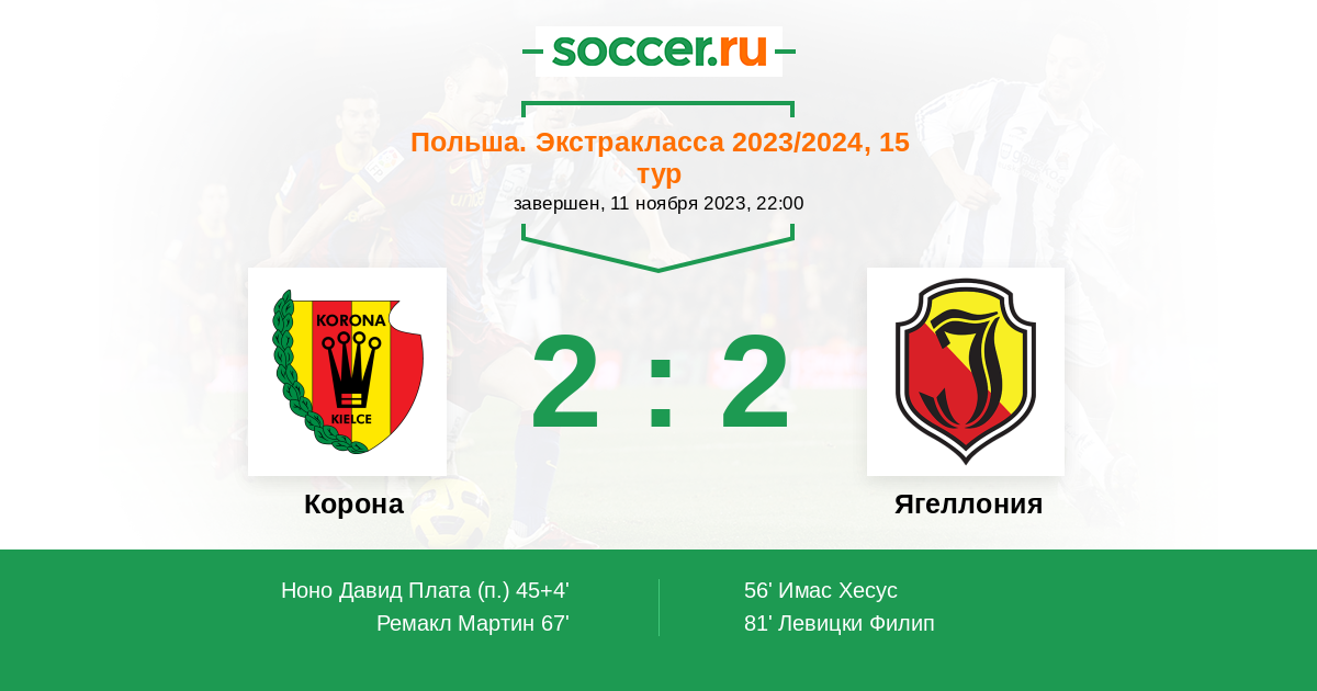 Корона - Ягеллония: обзор матча 11 ноября 2023