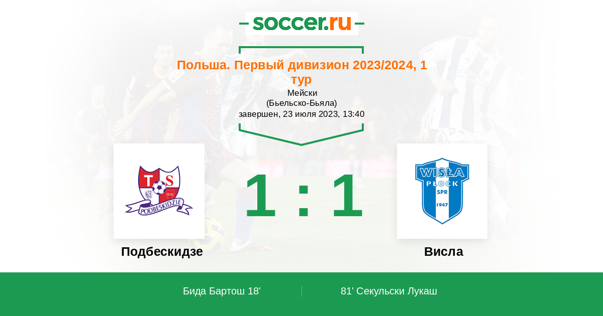Подбескидзе - Висла: обзор матча 23 июля 2023