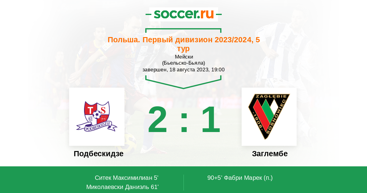 Подбескидзе - Заглембе: обзор матча 18 августа 2023