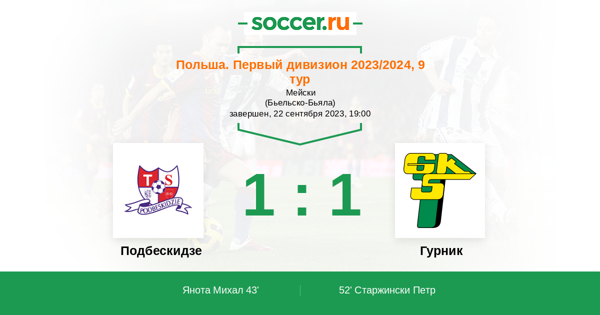 Подбескидзе - Гурник: обзор матча 22 сентября 2023