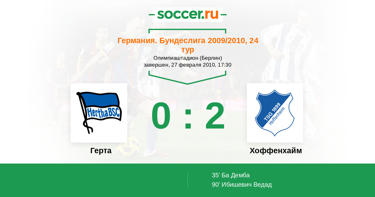 Герта - Хоффенхайм: обзор матча 27 февраля 2010