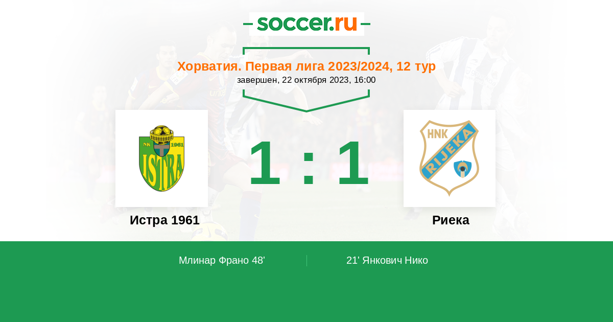 Истра 1961 - Риека: обзор матча 22 октября 2023