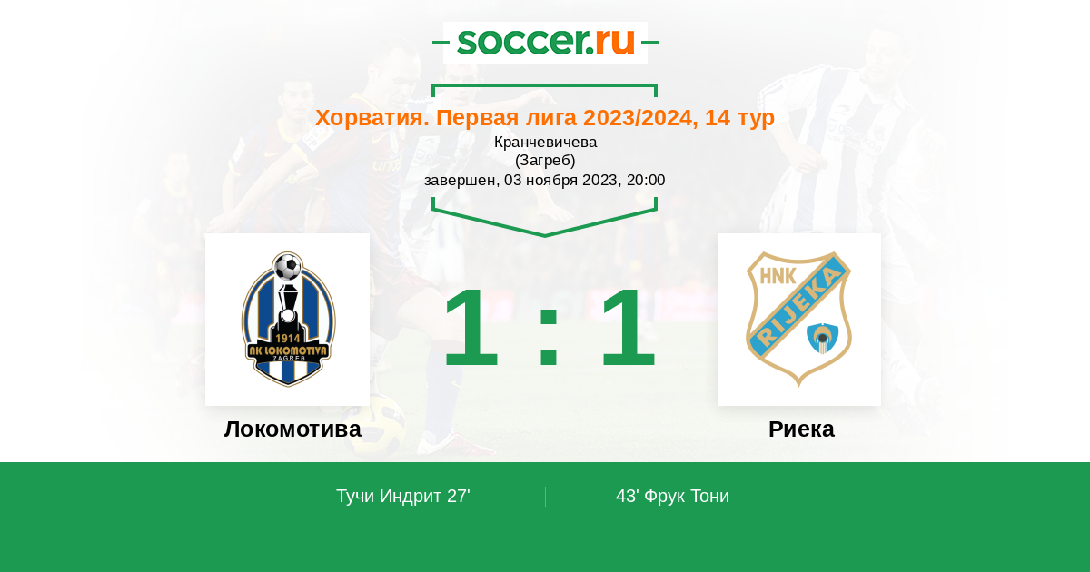 Локомотива - Риека: обзор матча 3 ноября 2023