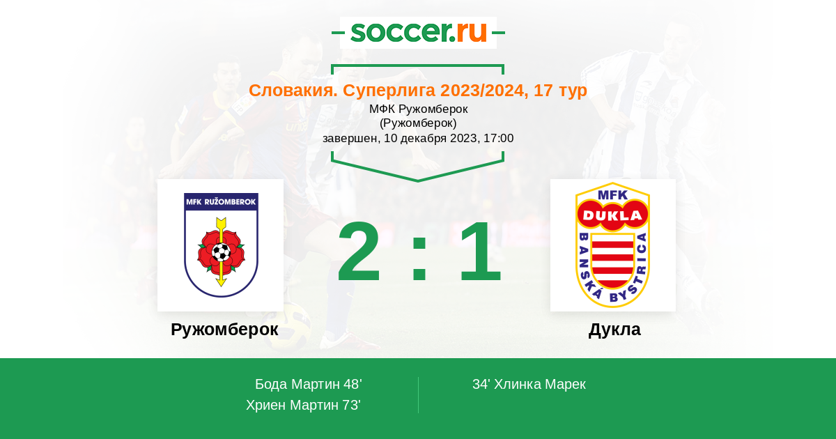 Ружомберок - Дукла: обзор матча 10 декабря 2023