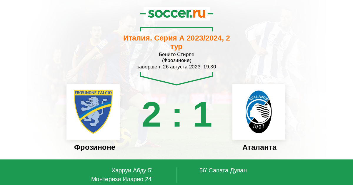 Фрозиноне - Аталанта: обзор матча 26 августа 2023