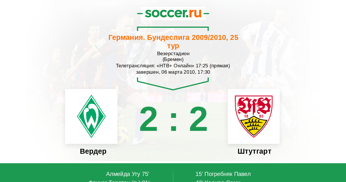 Вердер - Штутгарт: обзор матча 6 марта 2010