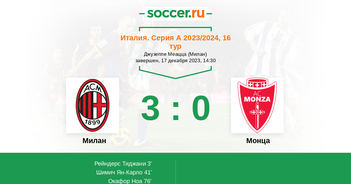 Милан - Монца: обзор матча 17 декабря 2023