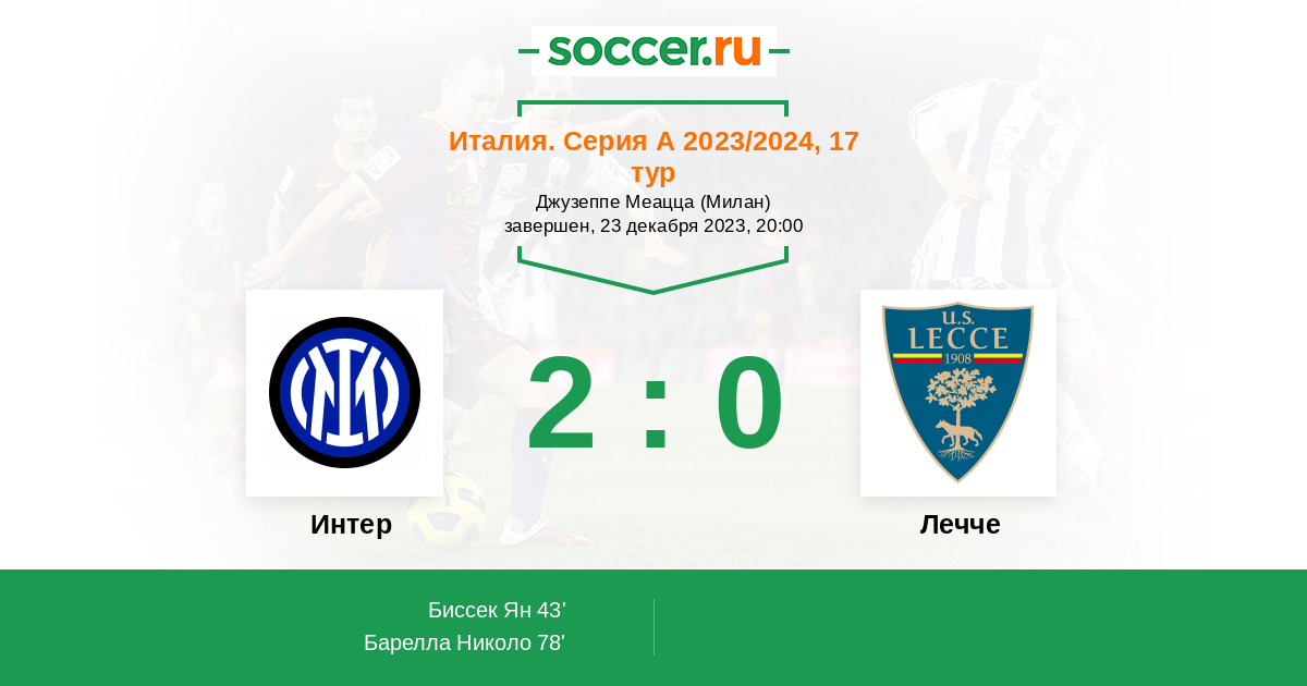 Интер - Лечче: обзор матча 23 декабря 2023