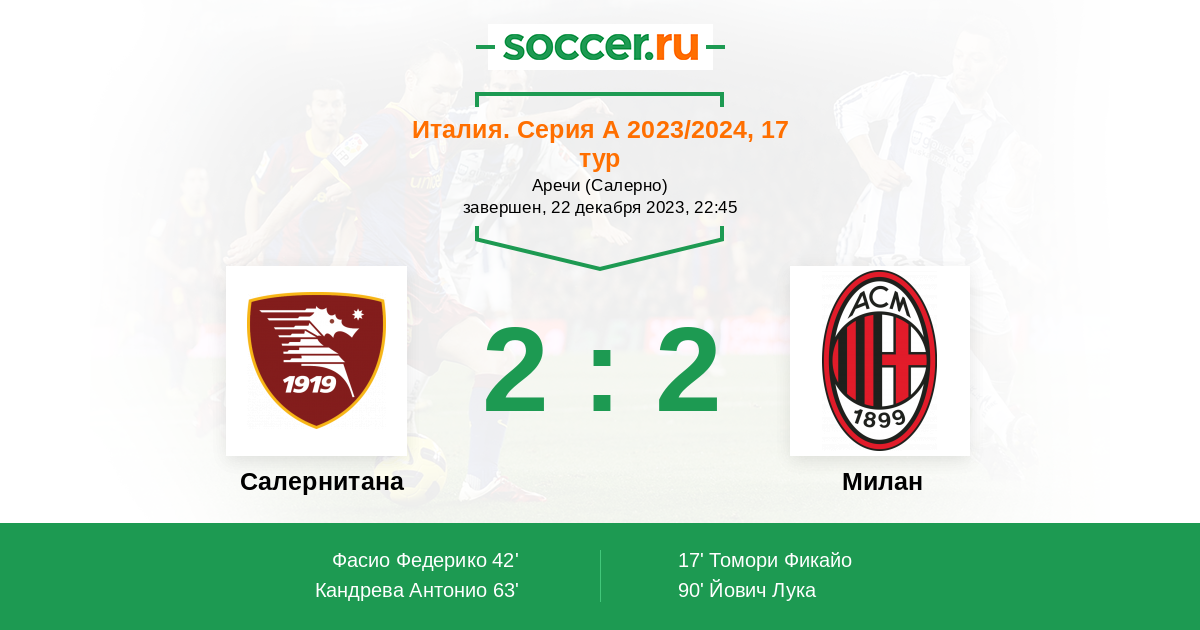 У “Милана” уже очень давно есть группа травмированных игроков, при этом все самые основные игроки в строю и с Жиру и Леау “россонери” просто обязаны сметать своего соперника. Вообще непонятно за счет чего в этом матче хозяева будут пытаться дать бой сопернику, поскольку у “Салернитаны” самая слабая оборона в лиге, а на счету уже 34 пропущенных мяча.