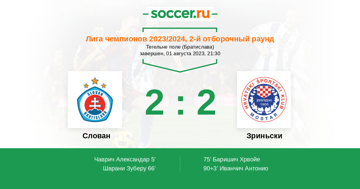 Слован - Зриньски: обзор матча 1 августа 2023