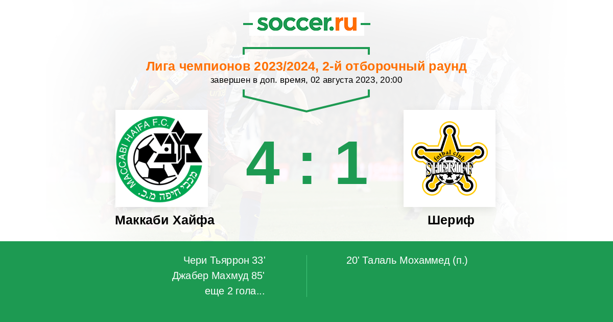 Маккаби Хайфа - Шериф: обзор матча 2 августа 2023