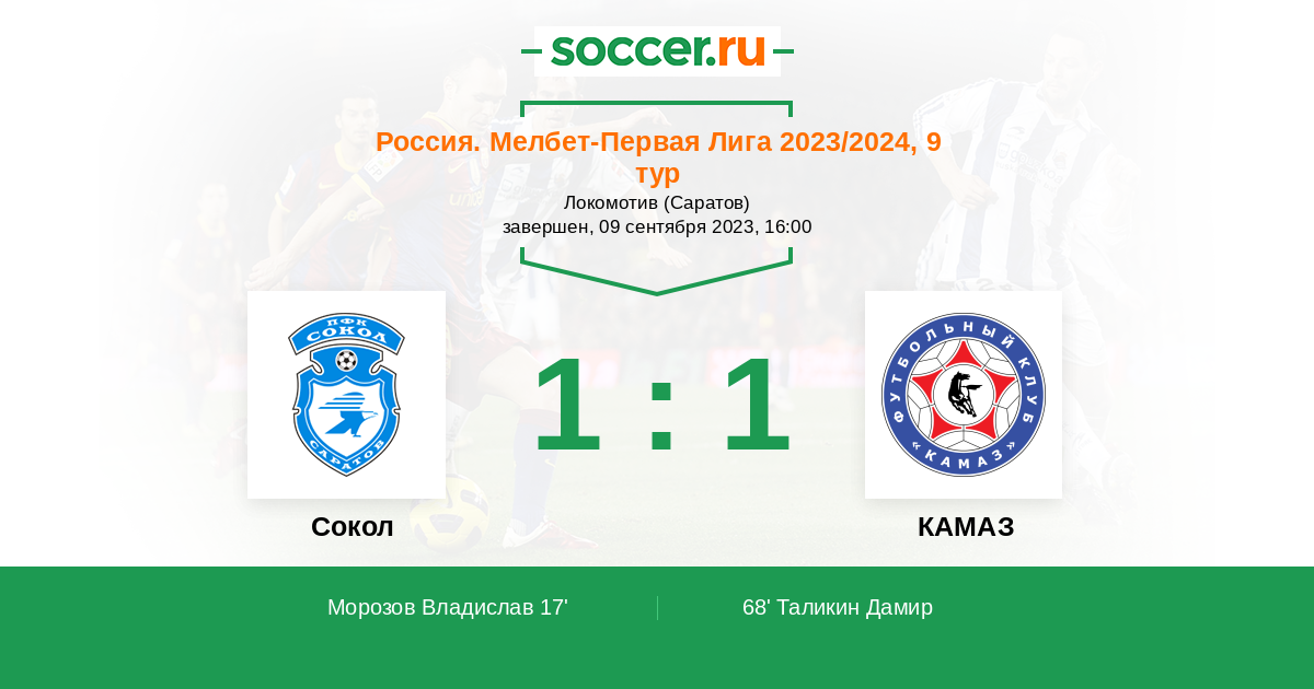 Сокол - КАМАЗ: обзор матча 9 сентября 2023