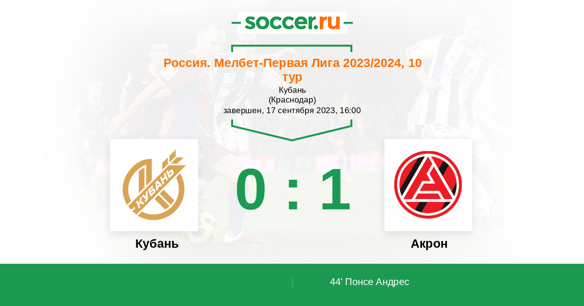 Кубань - Акрон: обзор матча 17 сентября 2023